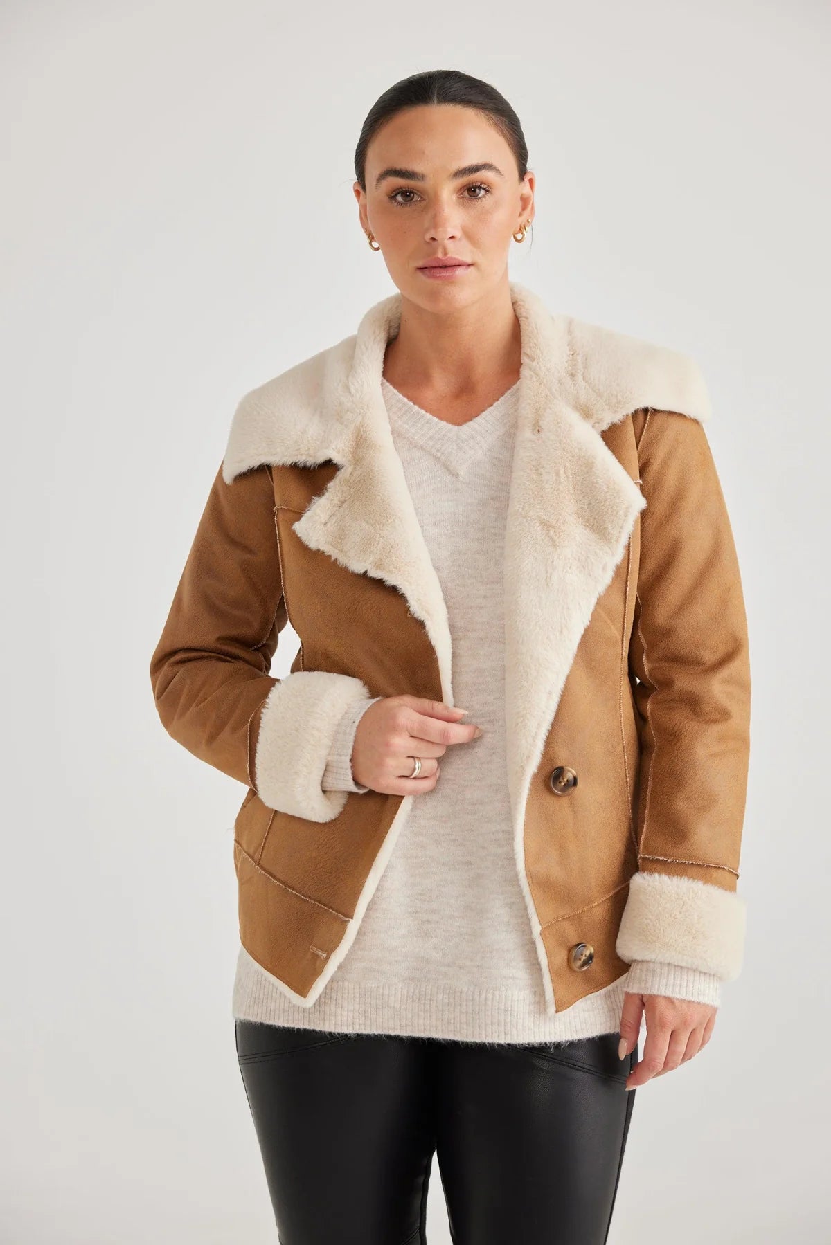 DOUBLE FACED JACKET WITH FAUX SUEDE AND SHEARLING INSIDE