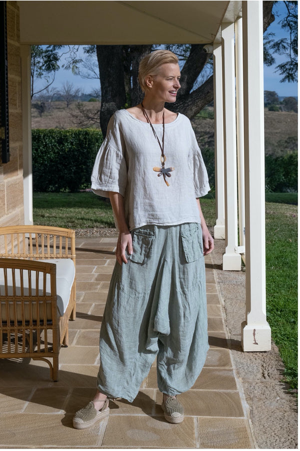 Gorgeous Aladdin style linen pants, featuring pockets! These pants are so cool and easy to wear. Pair with your fave Italian Cartel Linen top for an effortless, yet classy look. 100% Linen One Size Elastic waist Made in Italy